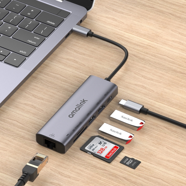 amalink 95122D Type-C / USB-C to RJ45 + 2 Ports USB + PD 3.0 Multi-function HUB