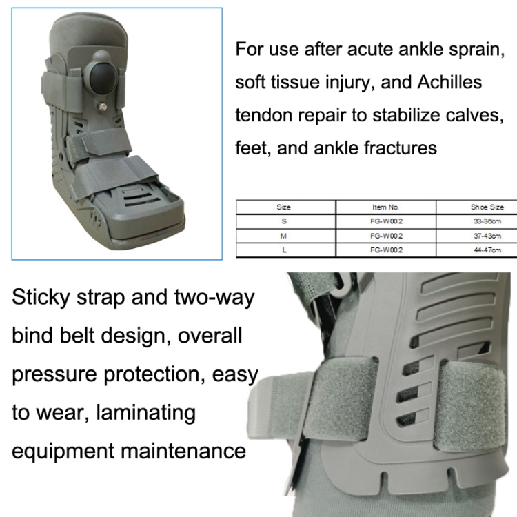 1. For use after acute ankle sprain, soft tissue injury, and Achilles tendon repair to stabilize calves, feet, and ankle fractures