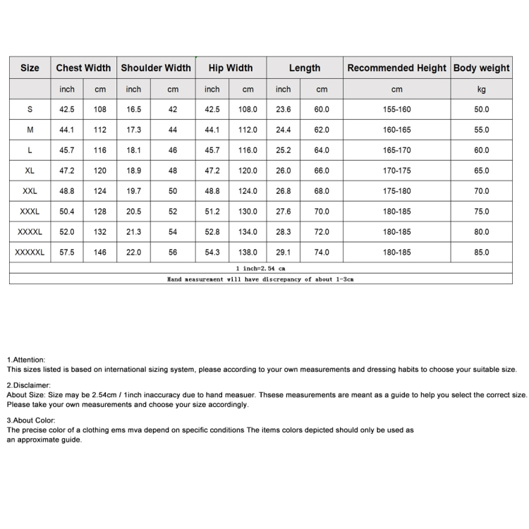 | Size | Size:S, Size:M, Size:L, Size:XL, Size:XXL, Size:XXXL, Size:XXXXL, Size:XXXXXL |