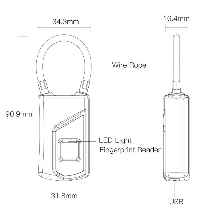 Anytek USB Charging Waterproof Anti-theft Non-password Electrically Intelligent Fingerprint Padlock Size:3.2cm × 3.5cm × 9cm
