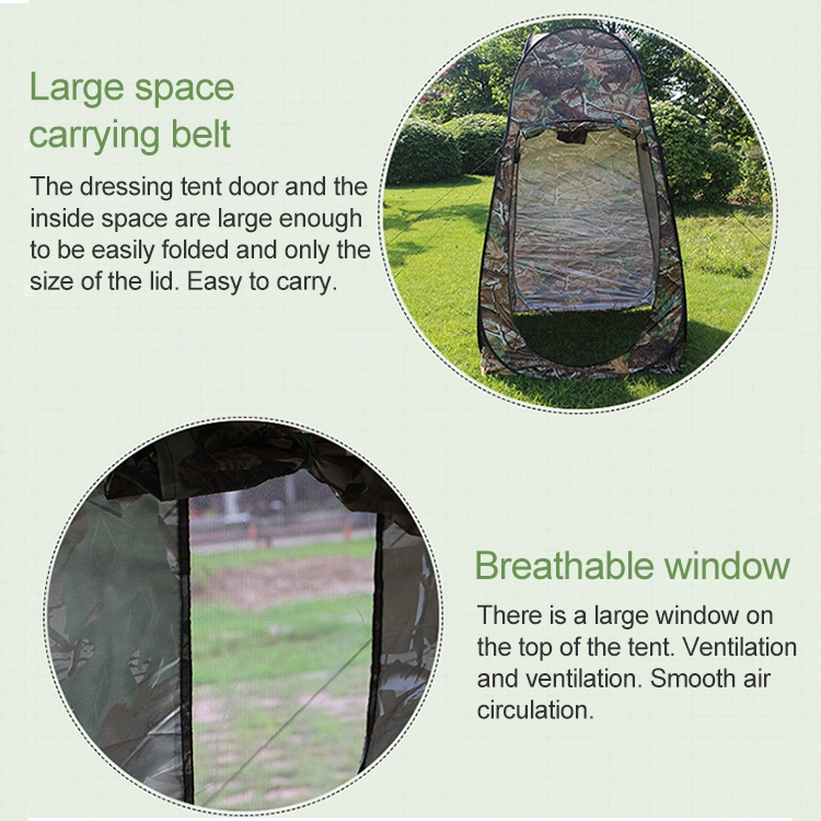 Applicable: family bathing, outdoor dressing, WC, fishing, outdoor rest, swimming and dressing and other multi-purpose, stable structure, smooth ventilation is a very good dressing tent.