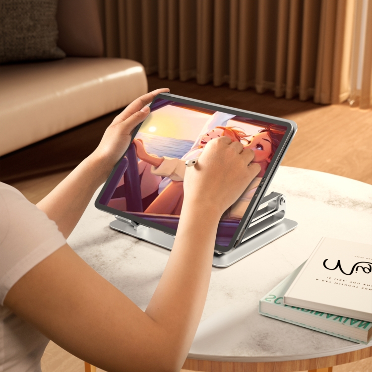 2. Stability and Protection: The folding tablet stand is made of premium aluminum alloy + silicone, with smooth edges, which protects your device from scratches. Provide a highly sturdy and durable silicone pad to ensure a close connection with the desktop to fix your tablet in place without worrying about shaking and slipping
