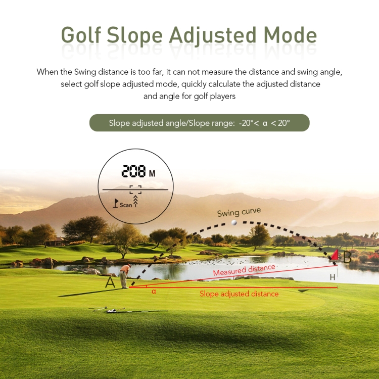 1. Functions: distance measurement, speed measurement, height measurement, angle measurement, golf trajectory correction, flagpole lock, smoke