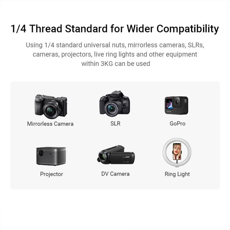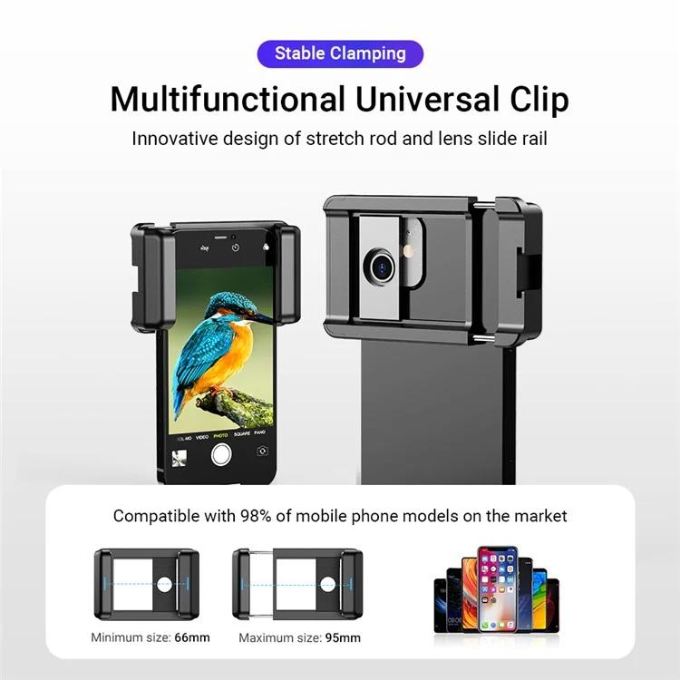 6. Universal mobile phone holder: innovative design of telescopic rod and lens slide rail, more stable clamping, and wider application. M17 thread hole, cold shoe and 1/4 universal screw hole provide more photography combinations.