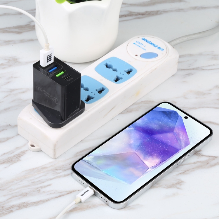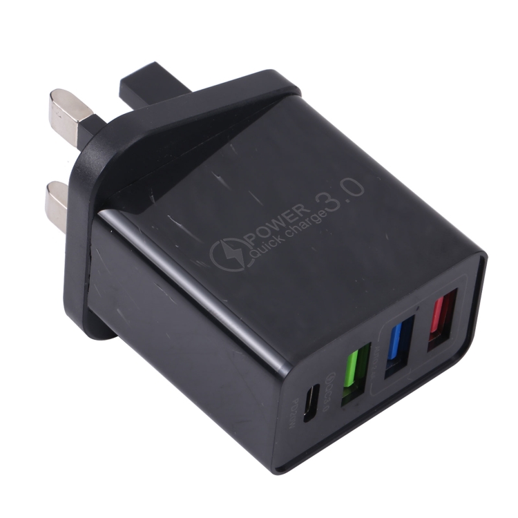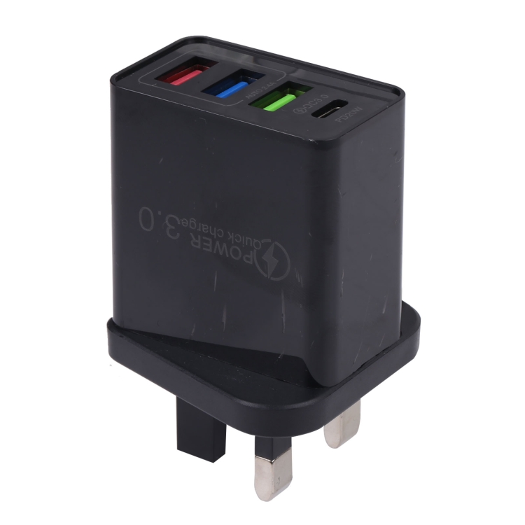 AR-2025 4 in 1 QC3.0 PD20W 3xUSB + USB-C / Type-C Wall Travel Charger, UK Plug