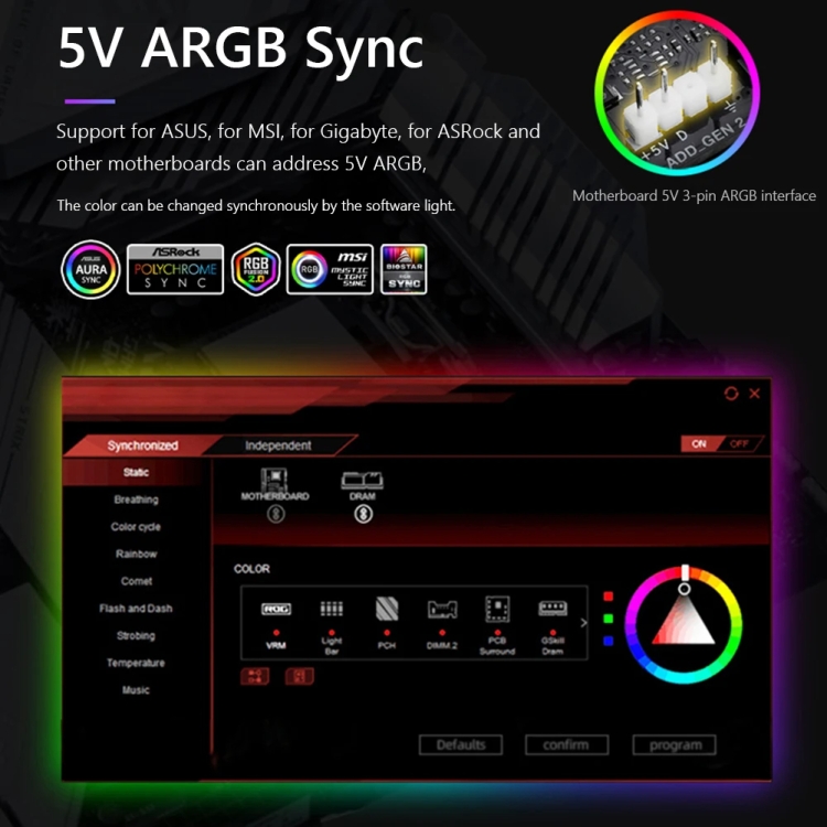 5. 5V ARGB synchronization, can be synchronized through the software light color change