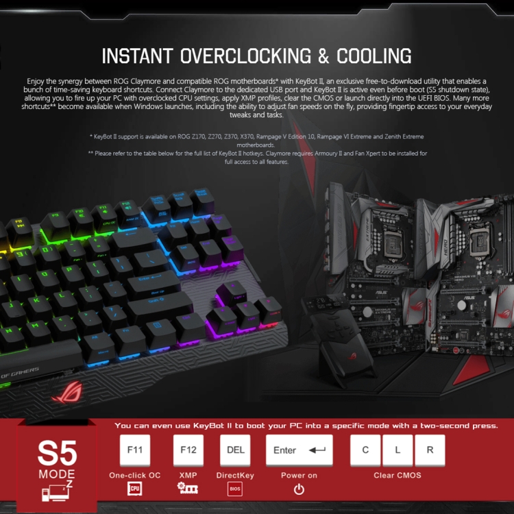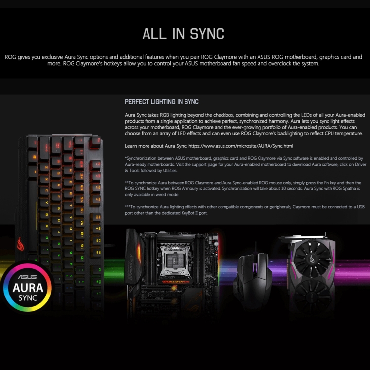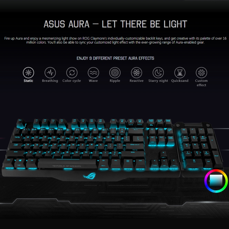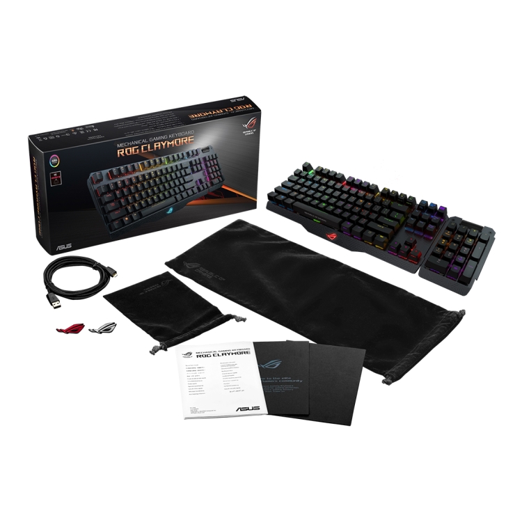 ASUS Claymore USB 2.0 RGB Backlight Detachable Wired Mechanical Black Switch Gaming Keyboard with Detachable Cable