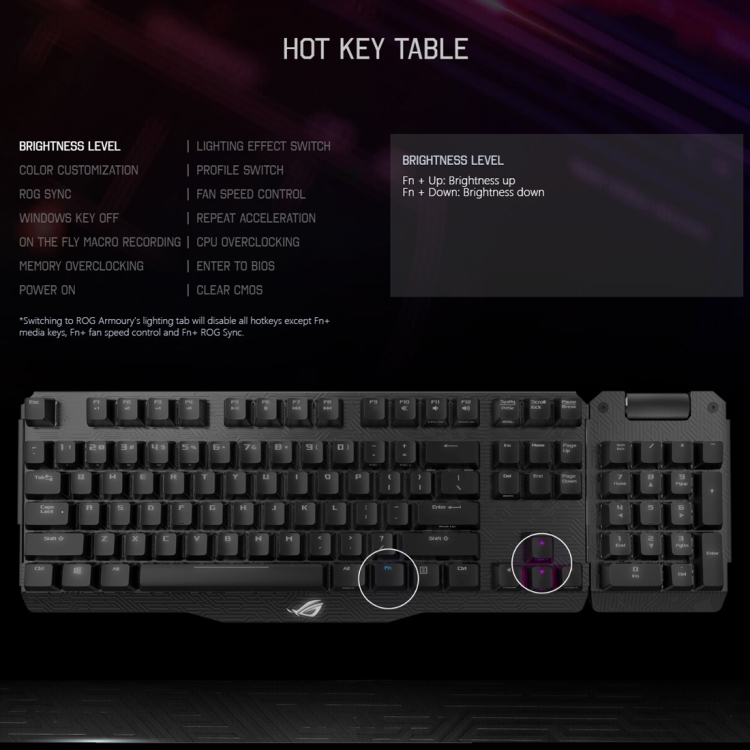 6. On-board flash memory, which can store user profiles and intuitive ROG Armoury software, allowing users to customize buttons, lighting effects and macro settings.