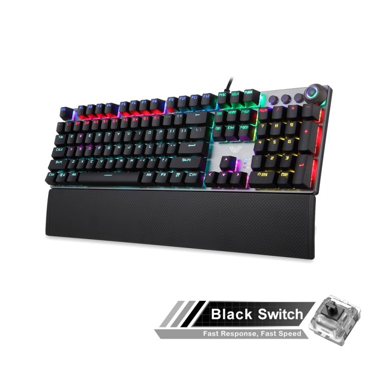 AULA F2088 108 Keys Mixed Light Mechanical Black Switch Wired USB Gaming Keyboard with Metal Button