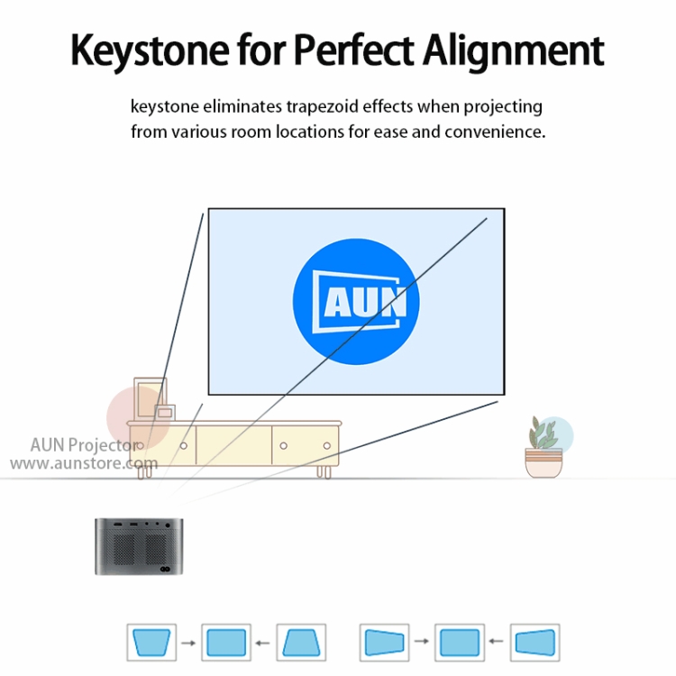 – Keystone correction: electronic keystone correction. Left and right, up and down.