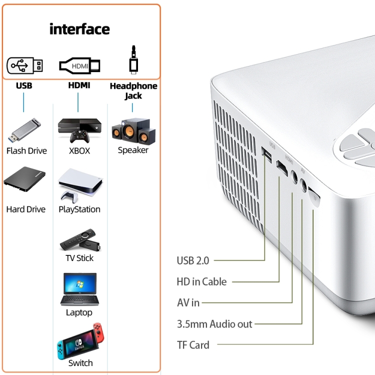 AUN AKEY8 1920×1080 6000 Lumens Portable Home Theater LED HD Digital Projector, Basic Version,