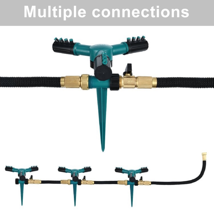 Automatic 360 Rotating Adjustable Garden Water Sprinklers Lawn Irrigation System with 3 Arm Sprayers and Spike Base