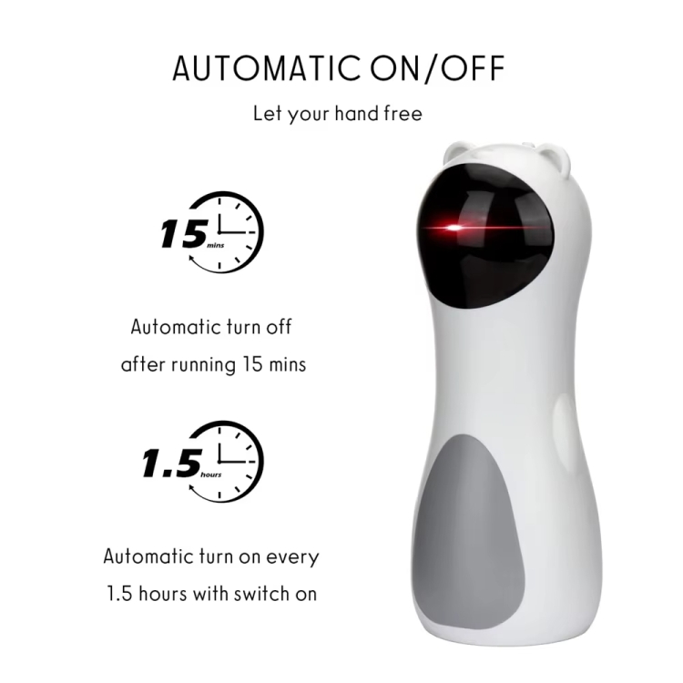 4. Timing function: each time it is turned on, it can continue to tease the cat for 15 minutes, and it will automatically turn on again for 15 minutes after 1.5 hours, and cycle in sequence;