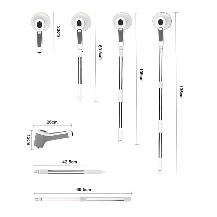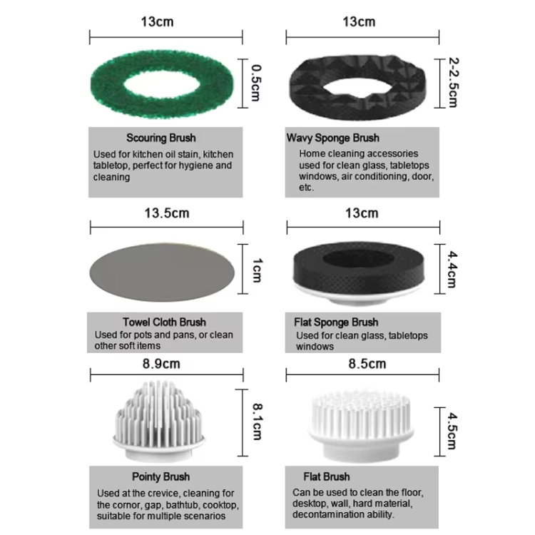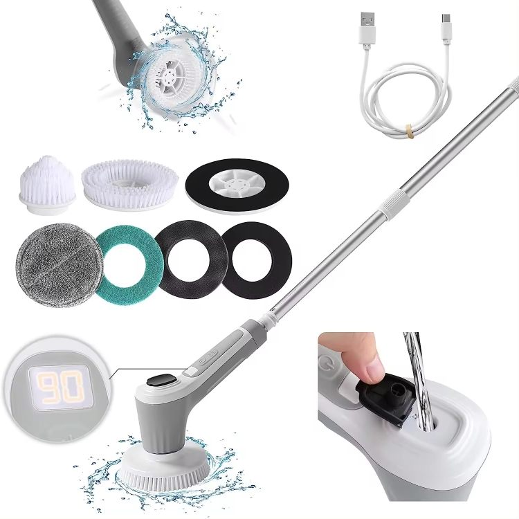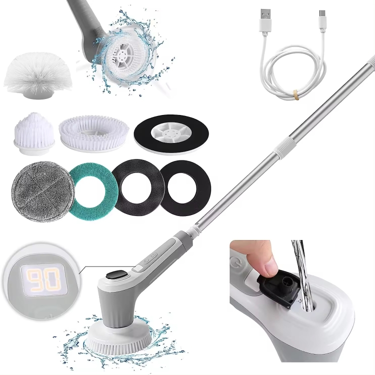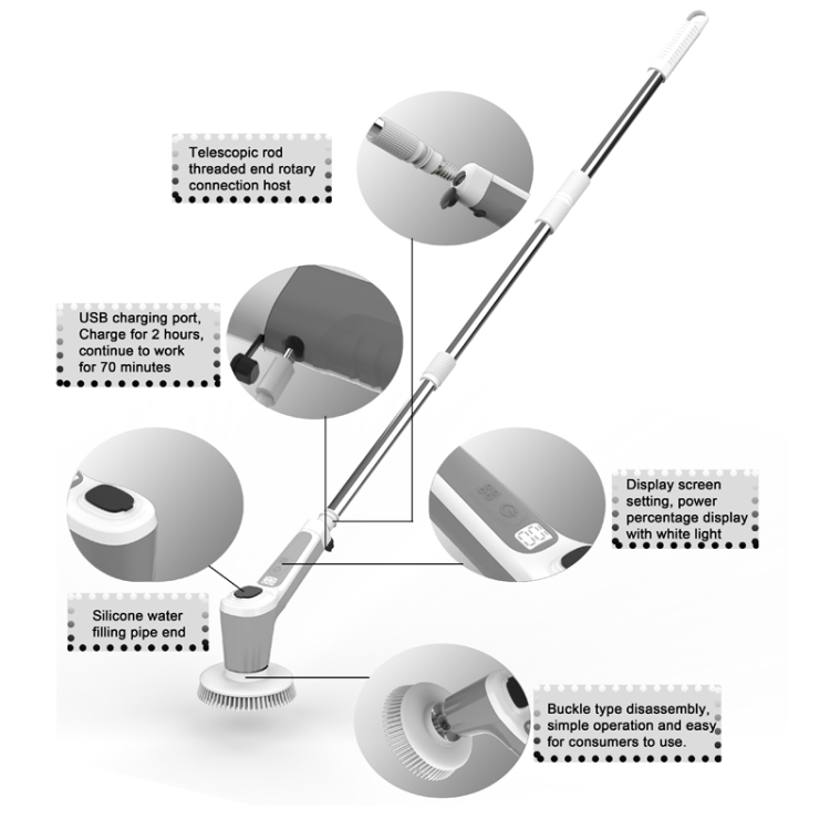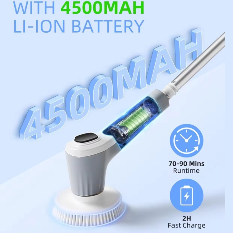 1. Cordless electric rotary scrubber, built-in 4500 mAh lithium battery, 2 hours of charging, can work continuously for 70 minutes, and there is also an LED power display, so you dont have to worry about running out of power during cleaning.