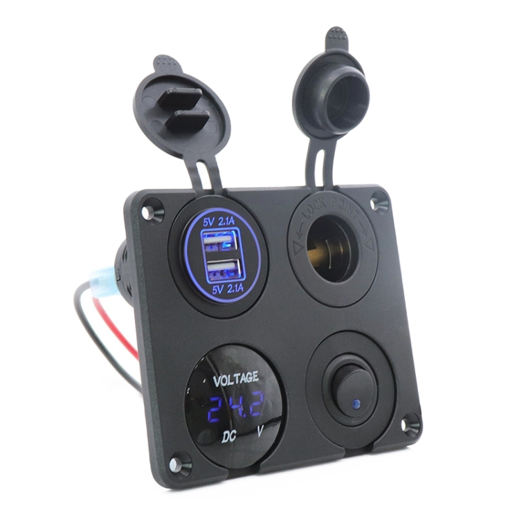 Automobile Motorcycle Ship Modified Universal Dual USB Socket Voltage Measuring Machine Switch 4 In 1 Combined Panel