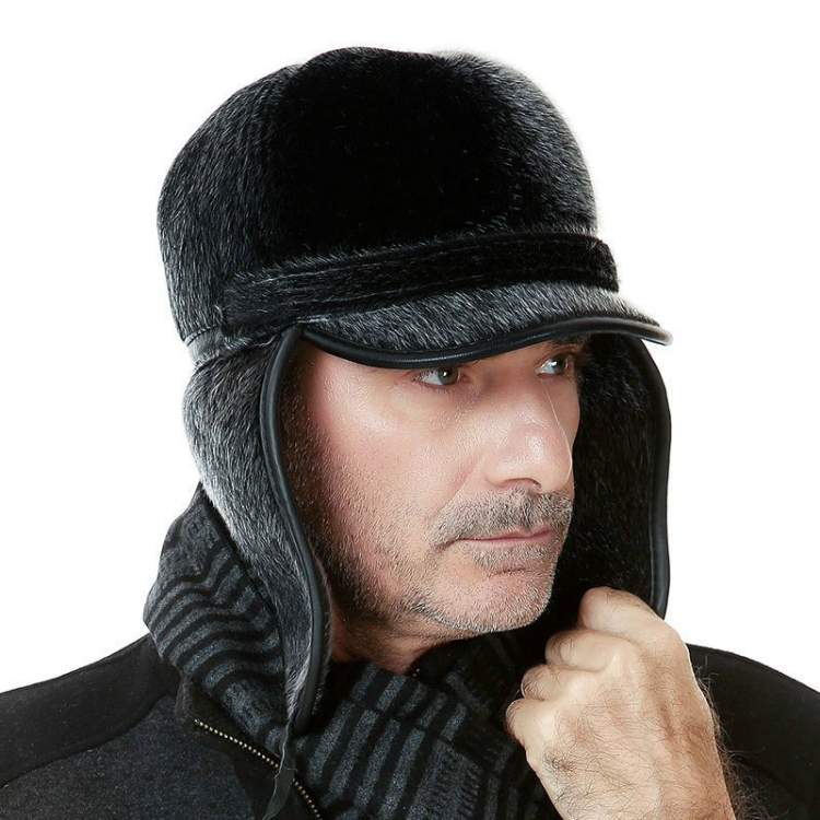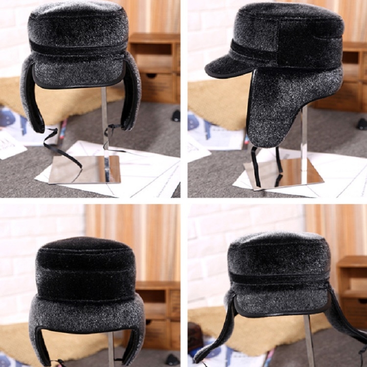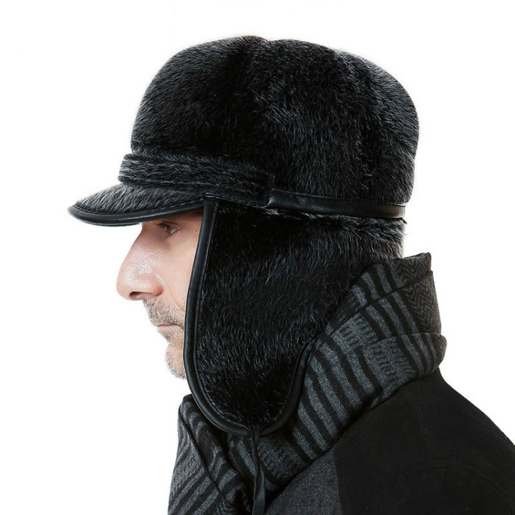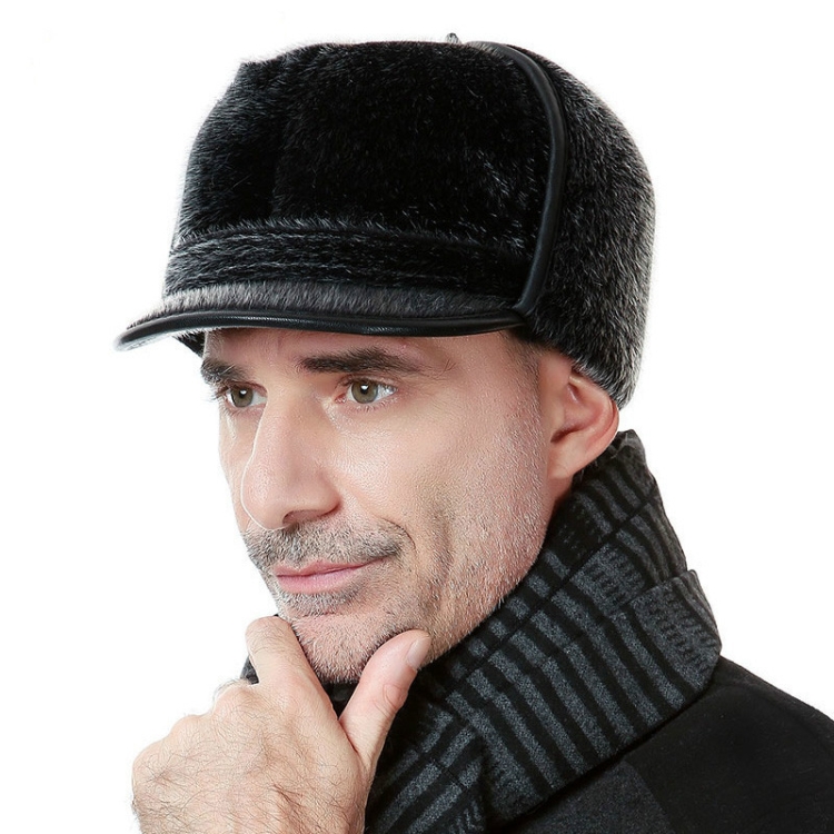 Autumn and Winter Imitation Mink Fur Warm Bombrt Hats Flight Cap for Middle-aged Men
