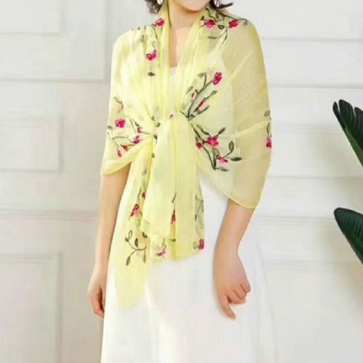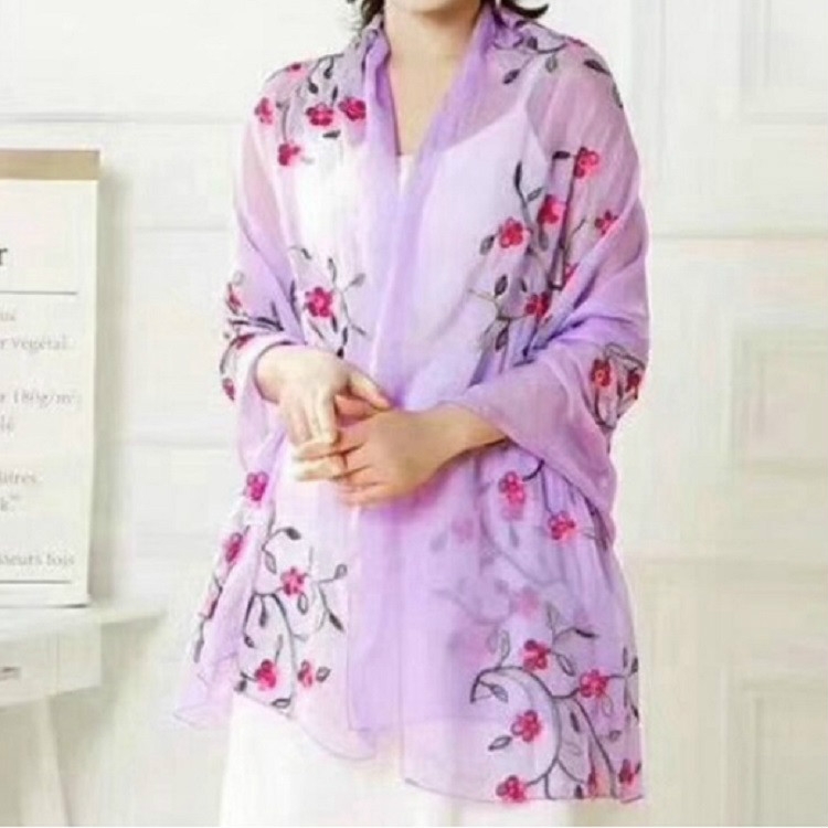 Autumn and Winter National Style Wild Peach Blossom Embroidery Pattern Long Lace Scarf Silk Scarf
