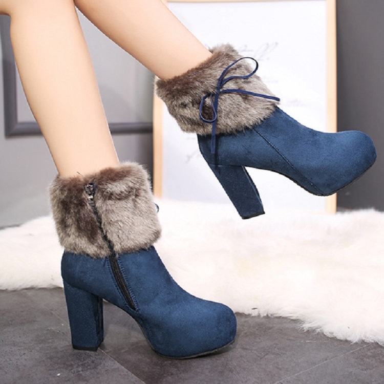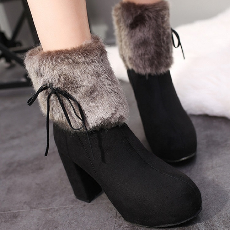 Be the first to review “Autumn And Winter Thick High Heeled Padded Warm Suede Round Toe Boots”