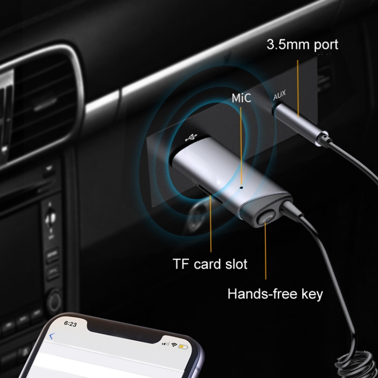 AUX Car Bluetooth Receiver Adapter 3.5mm Cell Phone Computer Connector With TF Card Slot