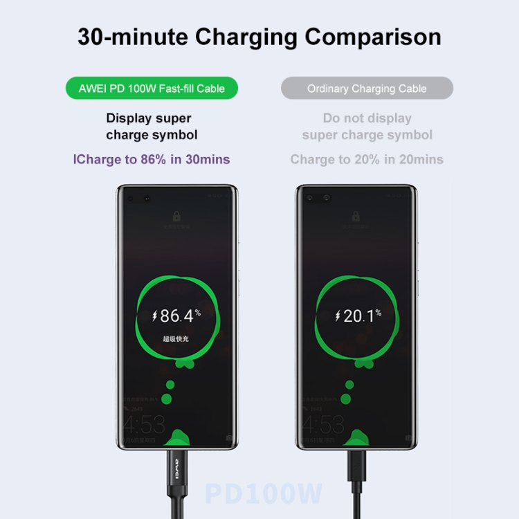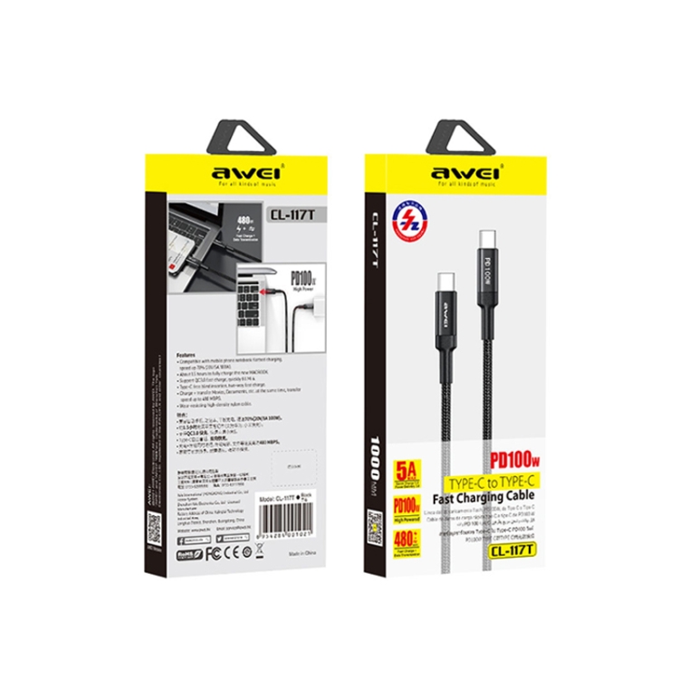 awei CL-117T 1m 5A Type-C to Type-C Fast Charging Cable