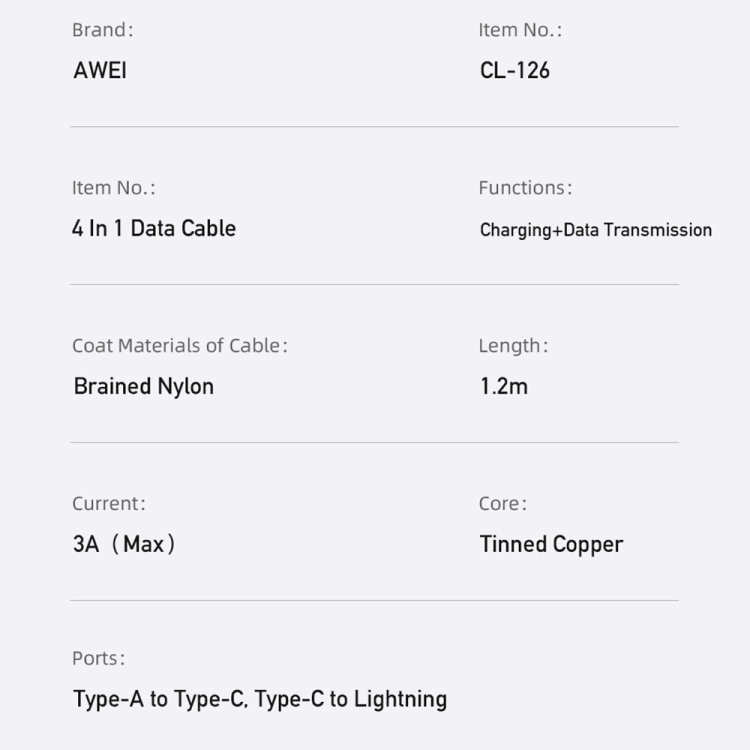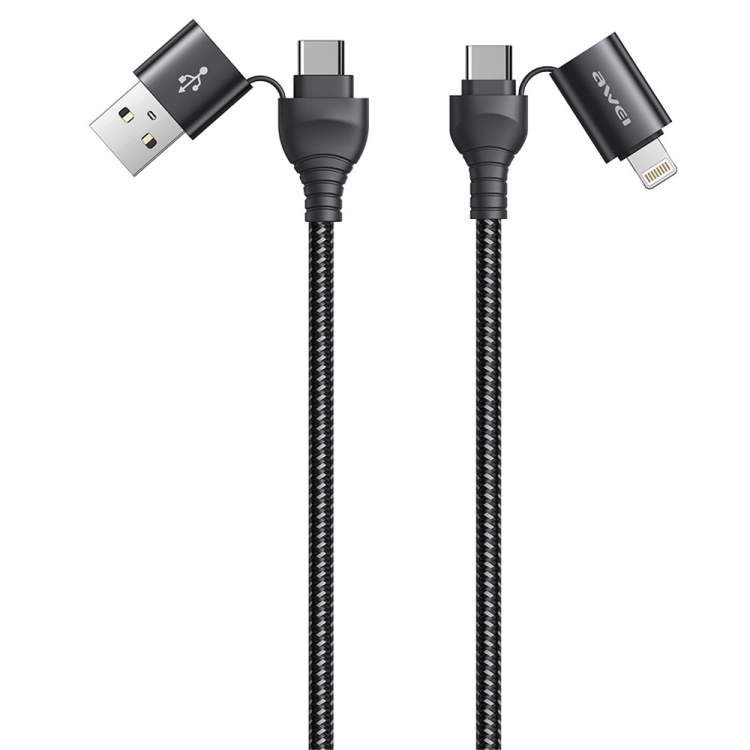 awei CL-126 1.2m 4 in 1 USB to USB-C / Type-C to 8Pin Data Fast Charging Cable