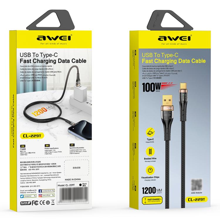 awei CL-229T USB A to Type-C with Chip Braid Fast Data Charging Cable