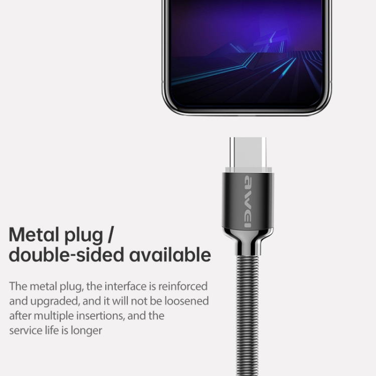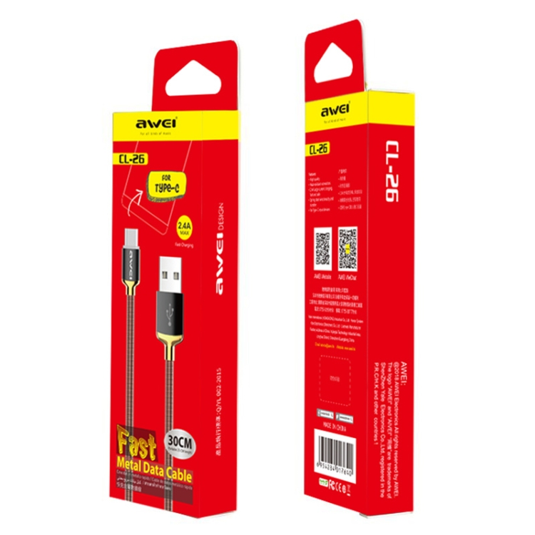 awei CL-26 0.3m 2.4A USB to USB-C / Type-C Metal Fast Charging Cable