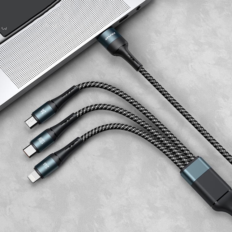 awei CL-972 Type-C / USB-C + 8 Pin + Micro USB 3 In 1 Fast Charging Data Cable, Length: 1.2m