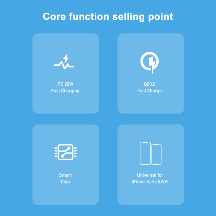 1. American standard PD+QC3.0 fast charging kit, power 20W, business stylish appearance
