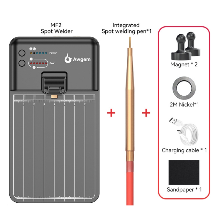 14. Configuration: host + 1 soldering pen (30cm) + 2 meters of nickel sheet + 2 magnet pins + charging cable + frosted paper