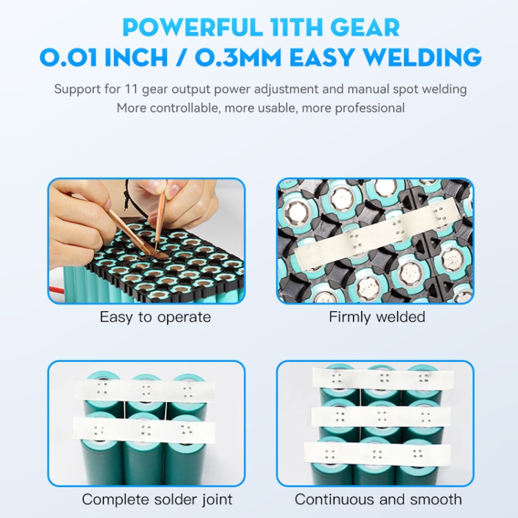9. Powerful gears, 0.01 inch/0.3mm easy welding, supports 11 levels of output power adjustment and manual spot welding, which is more controllable, more practical, and more professional