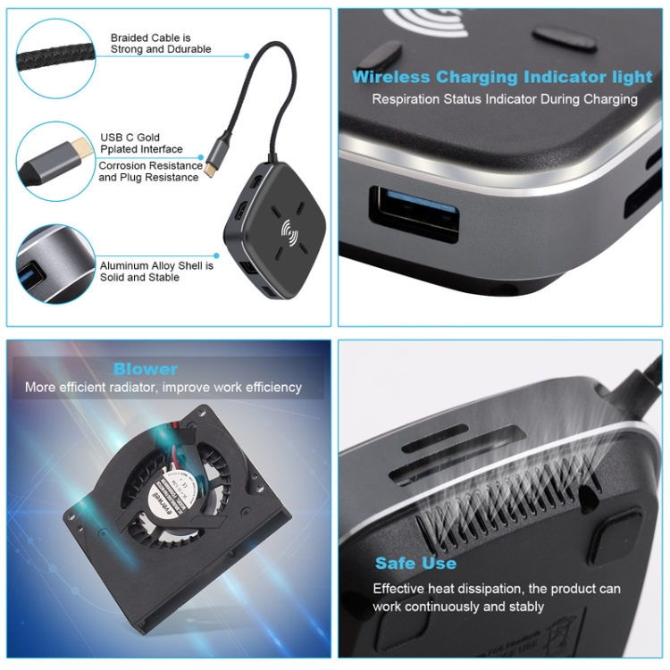 AY95 8 In 1 TYPE-C/USB-C To HUB Extended Dock Wireless Fast Charging Concentrator
