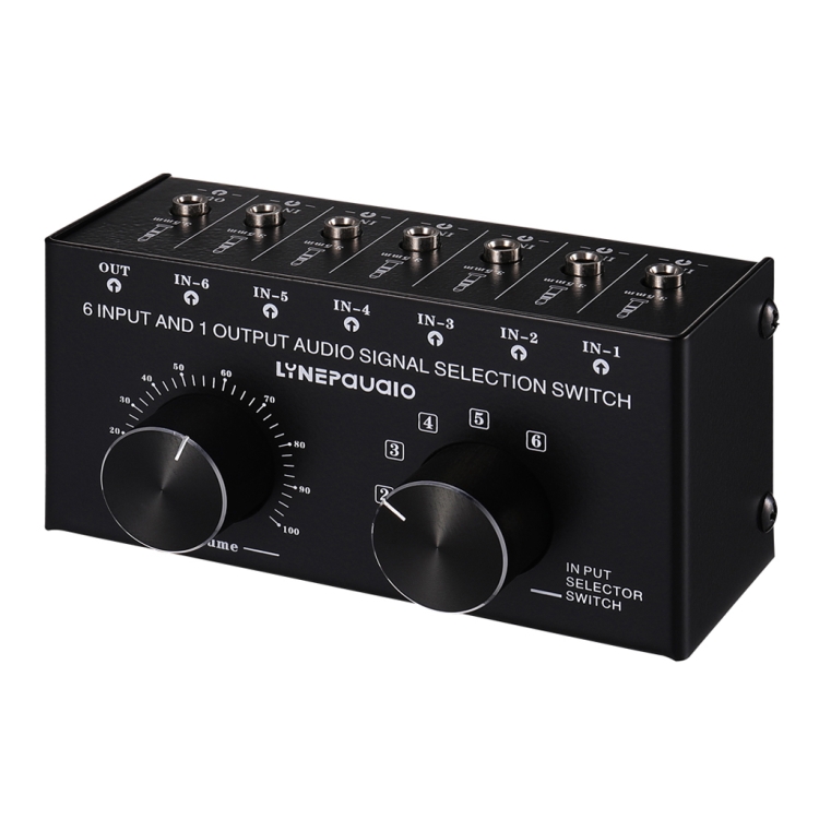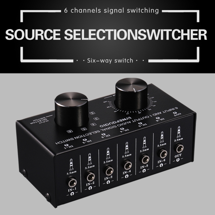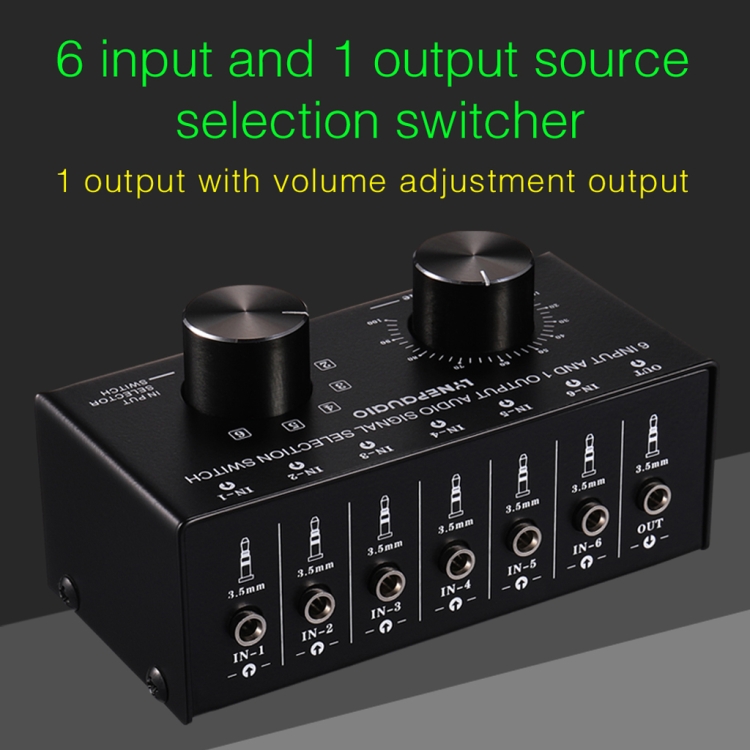 1 X 6 input 1 output stereo audio signal selection switcher output volume adjustment 3.5mm interface