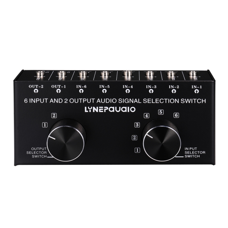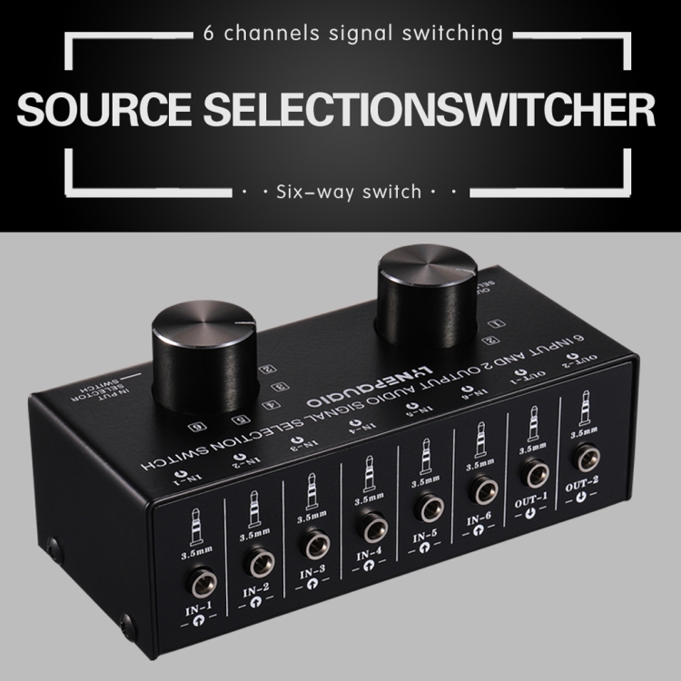 The 6-channel audio signal selection switcher solves complicated line plug in and plug out, which uniformly connects device input signal sources to the switcher for easily selection.