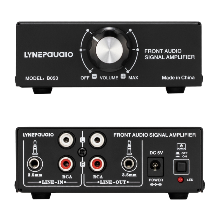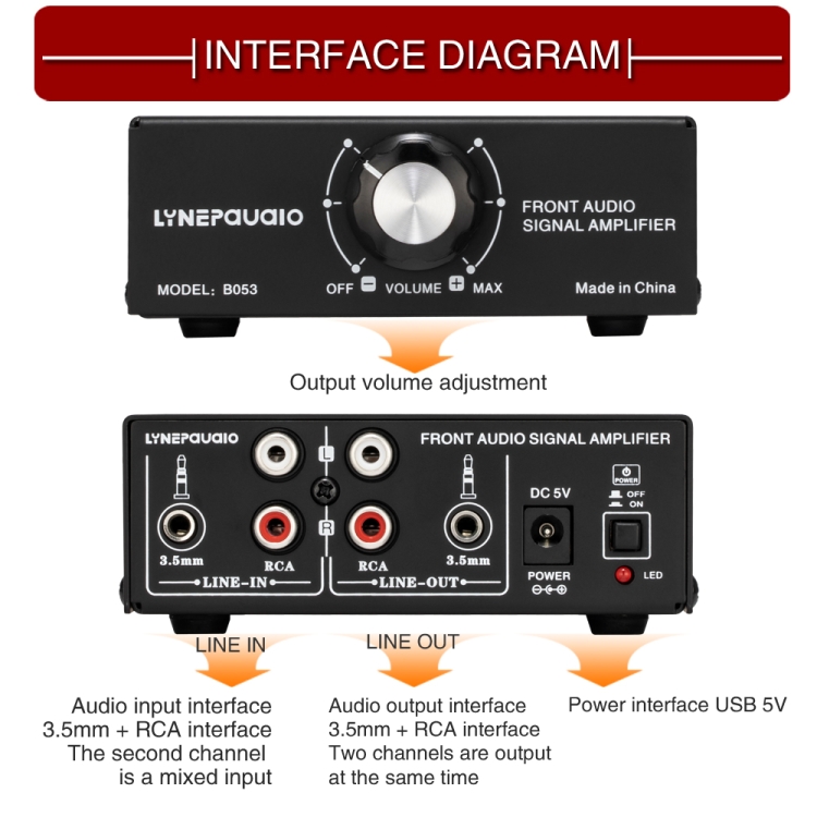 B053 Front Stereo Sound Amplifier Headphone Speaker Amplifier Booster with Volume Adjustment, 2-Way Mixer, USB 5V Power Supply, US Plug