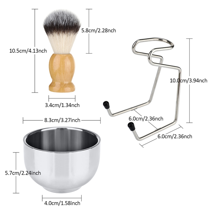 B3004 3 Pcs/Set Men Styling Tools Nylon Beard Brush Rack Foam Bowl