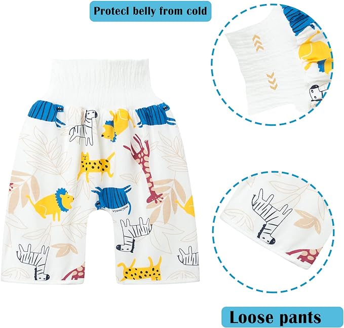 - 【Cute Design】Cute Animal pattern, High waist belly protector is comfortable and elastic, protects the baby’s tummy, and prevents it from getting cold, Adjustable button: potty pants have an extra row of buttons at the waist to move to any position, comfortable and stretchy, there is a water barrier below the inner waist, The baby’s urine will not penetrate to the waist, The soft touch and natural warmth feeling can make baby move freely and enjoy potty training, Your baby will love it