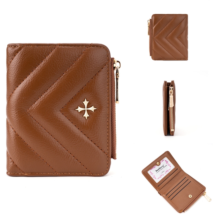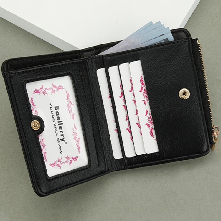Baellerry N2401 PU Leather Short Wallet with Multiple Card Slots Cross Flower Zipper Coin Purse