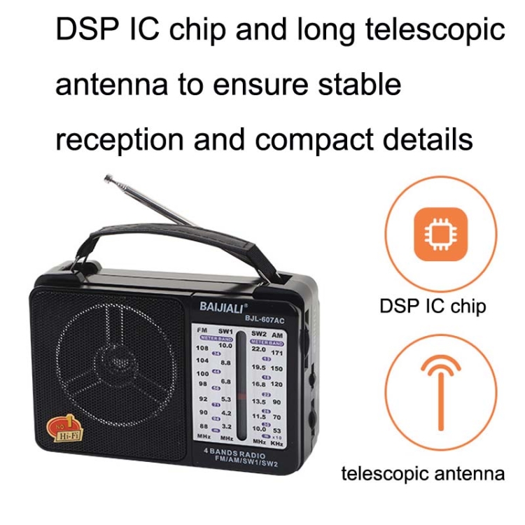 BAIJIALI BJL-607AC Full Band Multi-functional Retro Radios Big Voice Radio