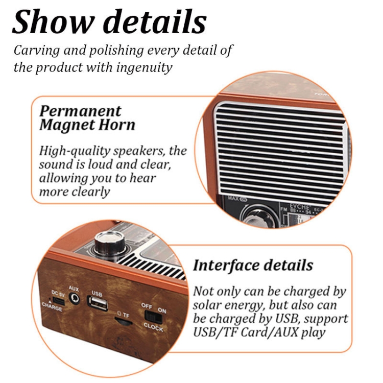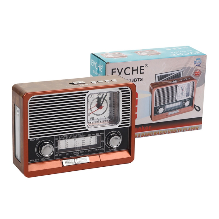 BAIJIALI EC-2113BTS Retro Wood Grain Clock Player Wireless Solar Energy With Lamp Outdoor Radio