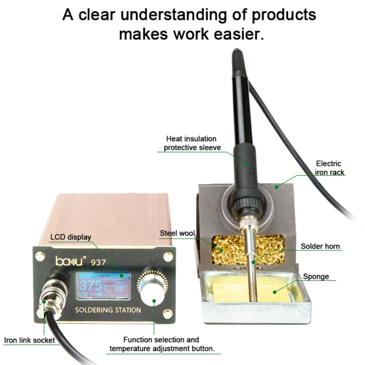 BAKU BA-937 LCD Digital Display Soldering Iron Welding Station Set, EU Plug