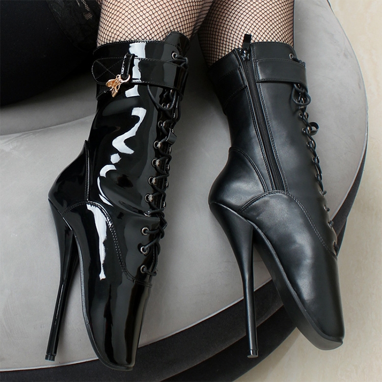 Ballet Pumps Spike Heel Black Lace-Up Pointed Toe Shoes