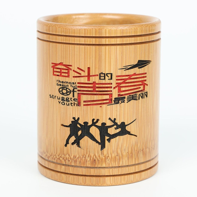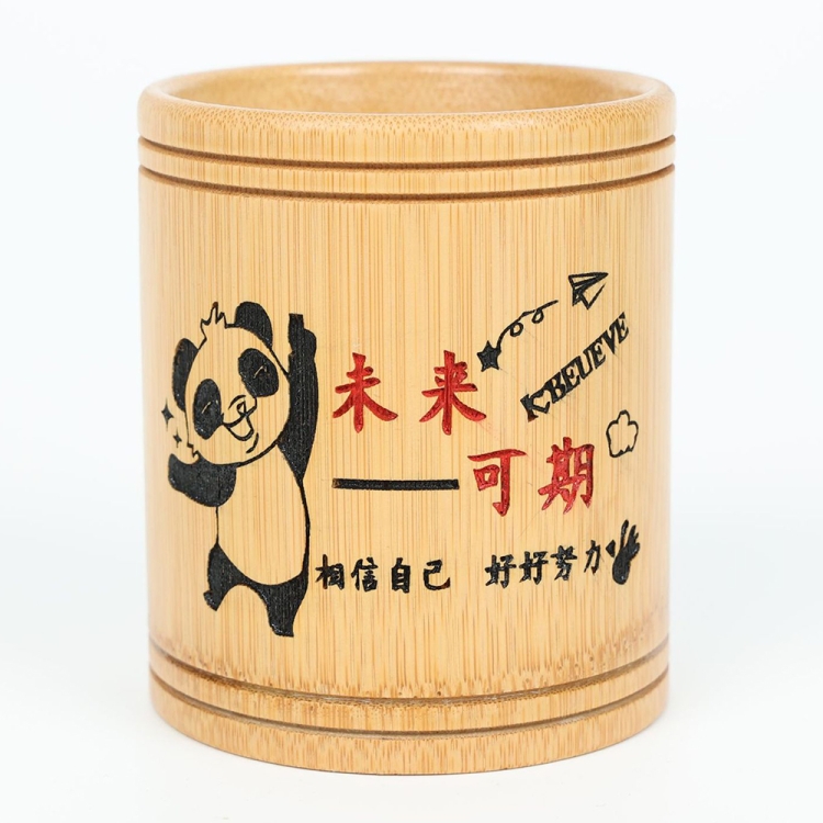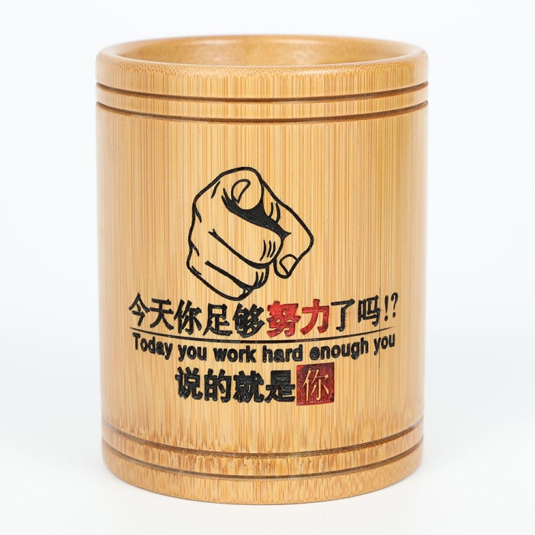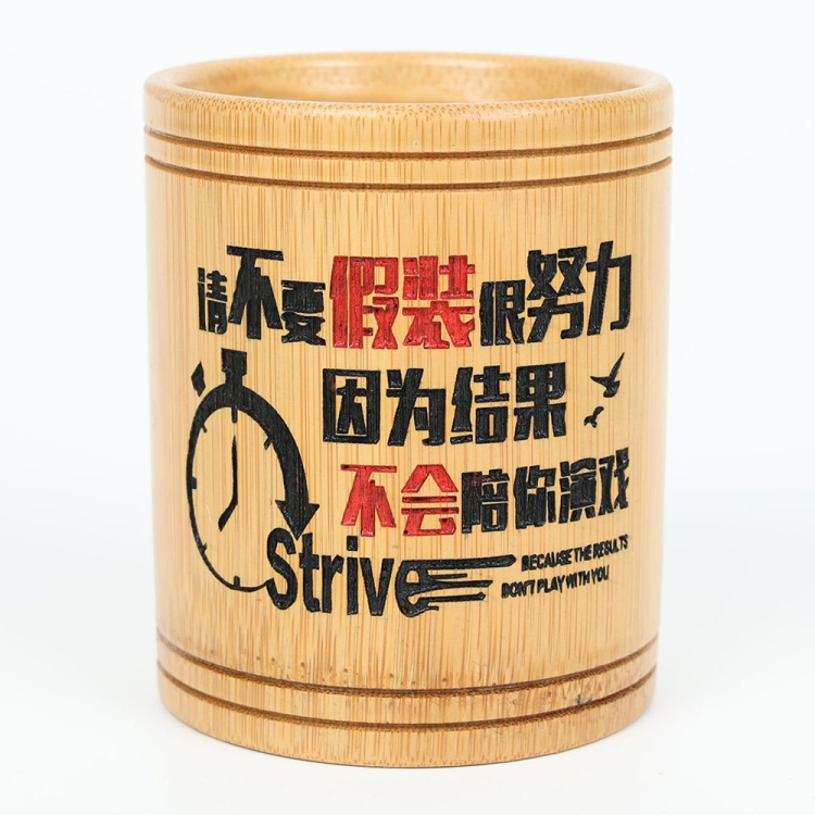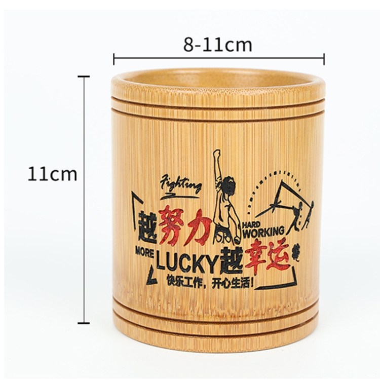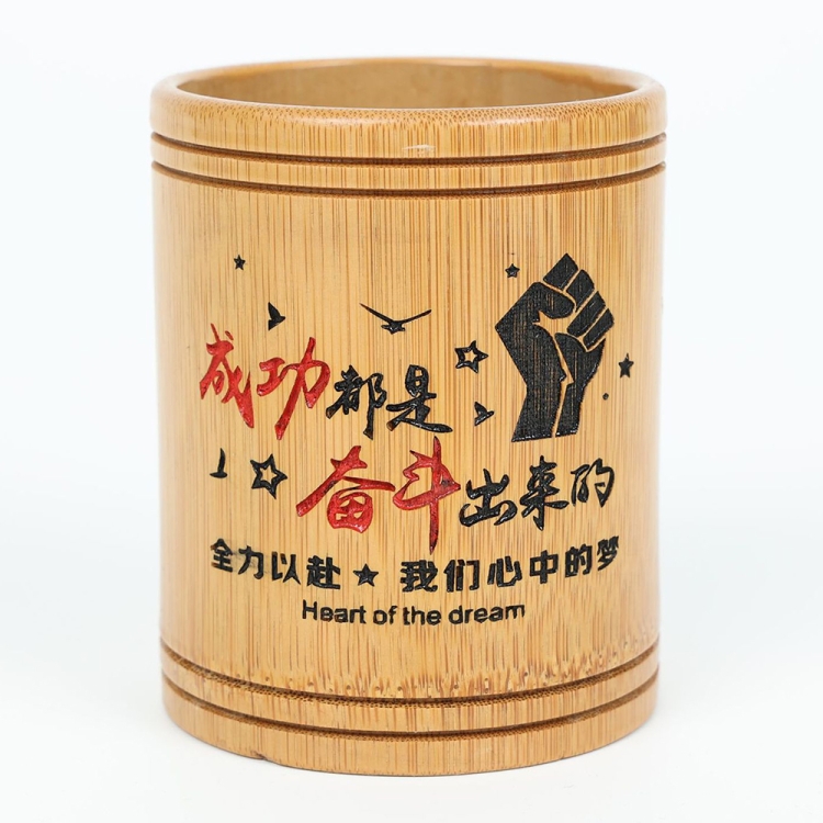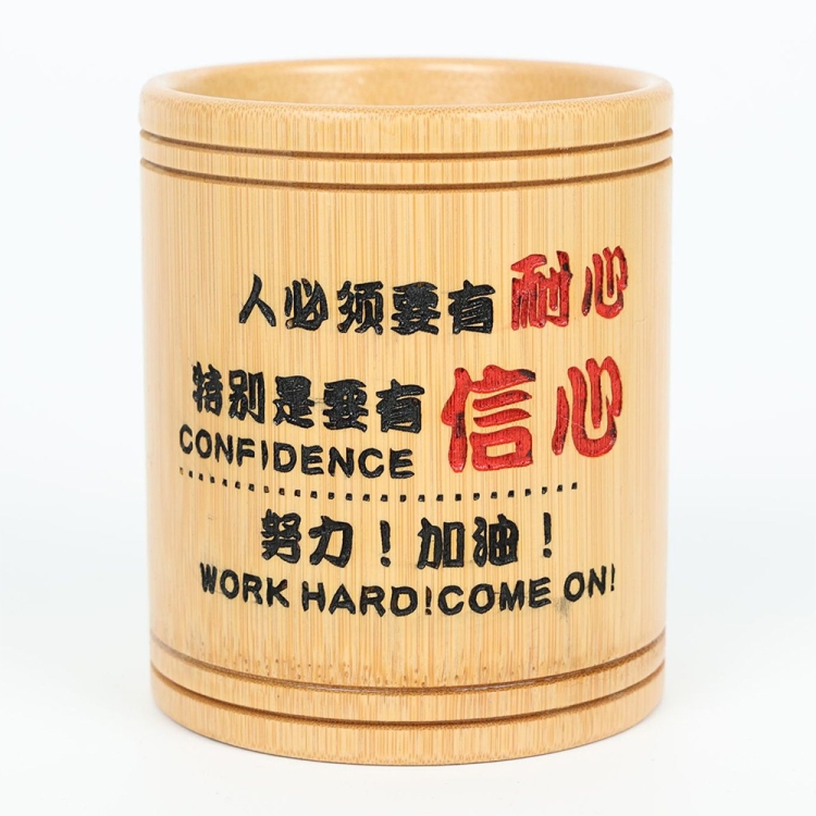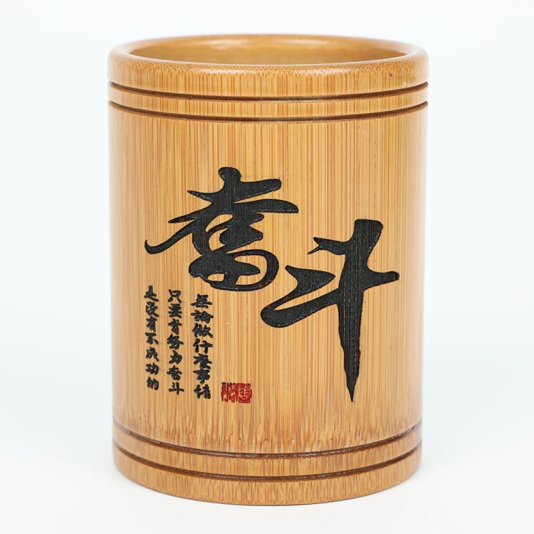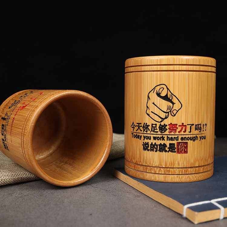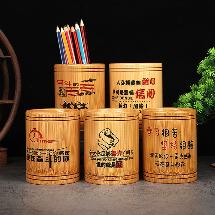 Bamboo Carved Round Pen Holder Multifunctional Desktop Storage Box