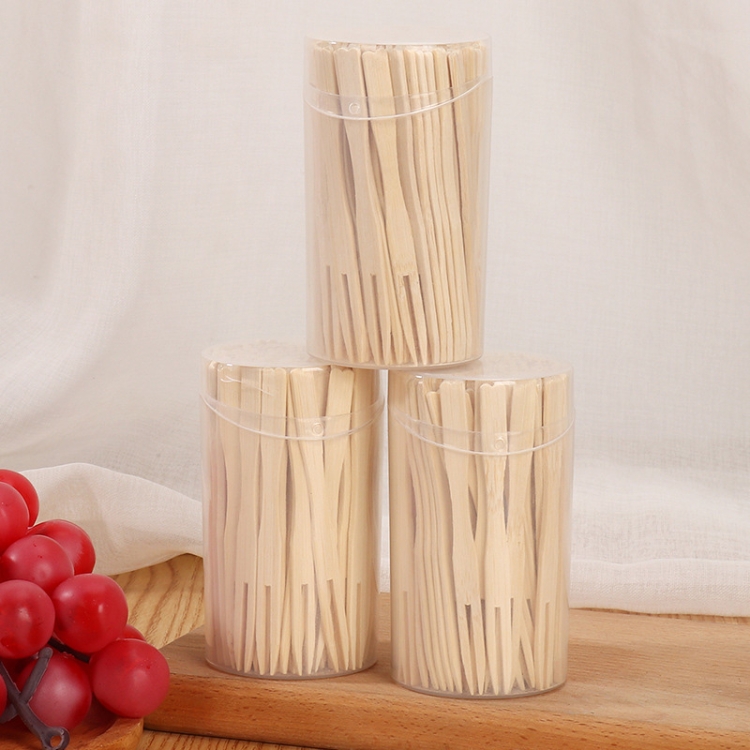 Bamboo Fruit Stick Disposable Two Tines Dessert Fork For Home Use