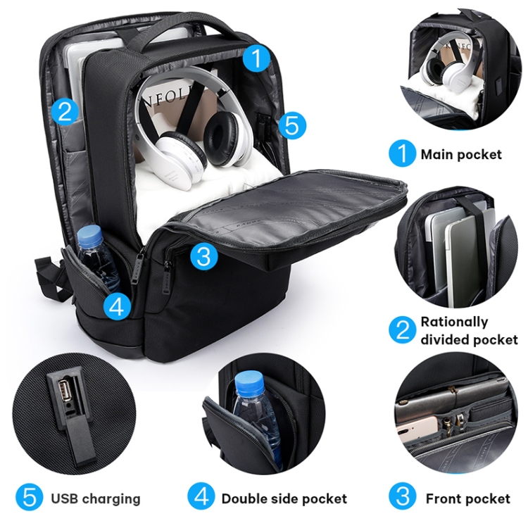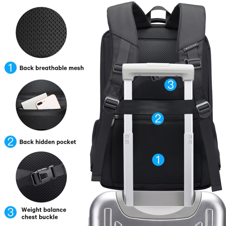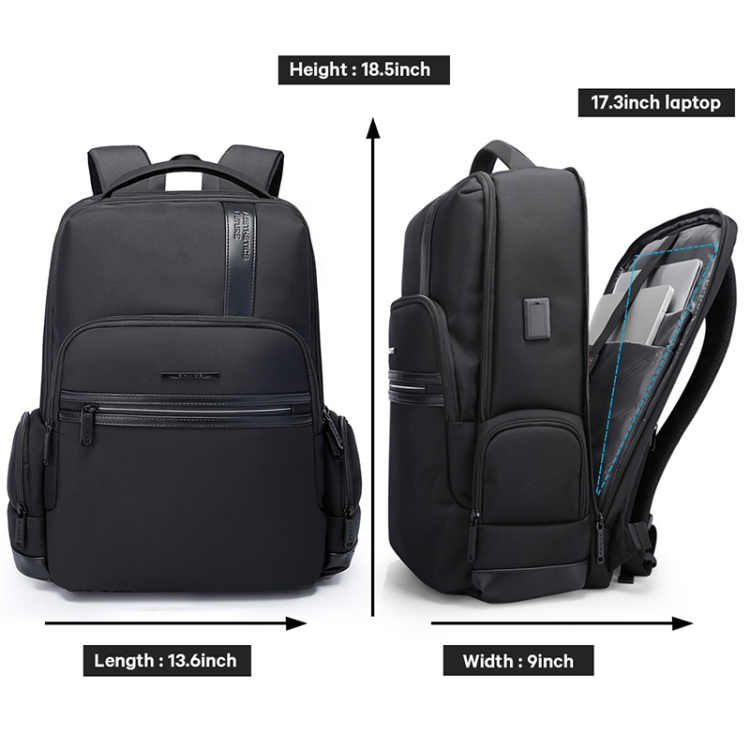 Bange BG-2603 Men Letter Leather Stitching Waterproof Backpack with USB Port, Size: 46 x 33 x 19cm