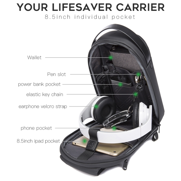 BANGE BG-7256 Men Chest Bag Waterproof EVA Hard Shell Messenger Bag
