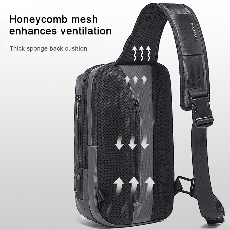 BANGE Men Security USB Chest Bag Portable Outdoor Shoulder Bag