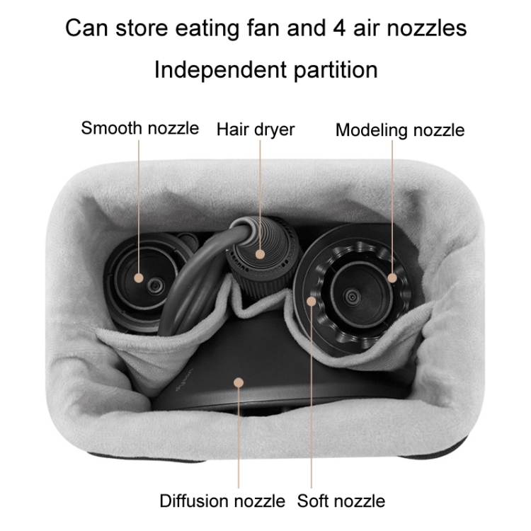 2. Internal structure: one main position, two positions for air nozzle accessories, one position for large air nozzle