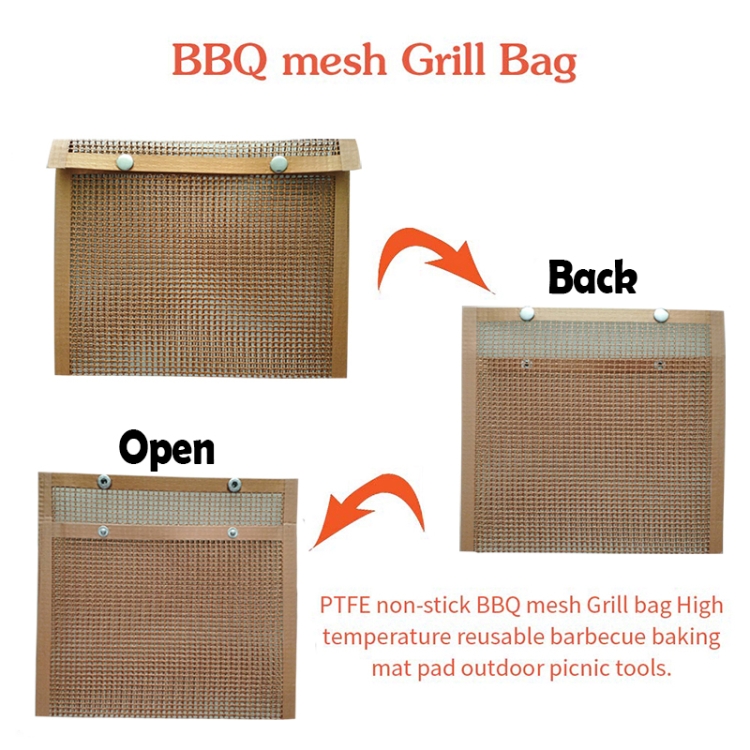 2. Snap button fasteners so your food stays securely inside the bag,Grill food without losing through grill grates, the bag is easy to flip & turn.