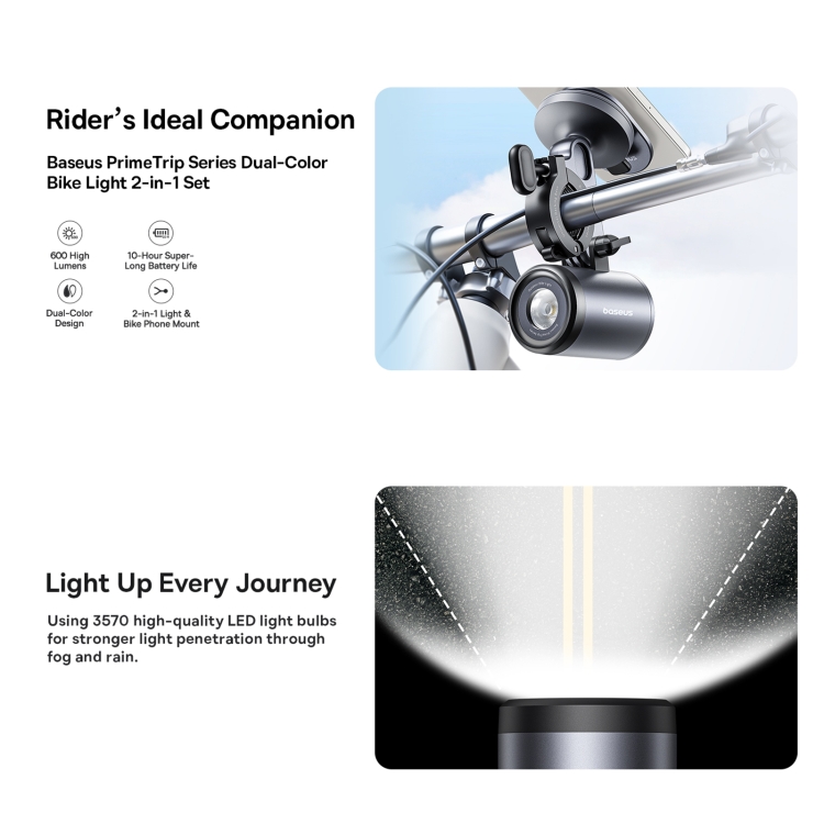 Baseus PrimeTrip Series 2 in 1 Set Dual Color Bike Light Bicycle Phone Holder
